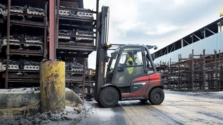 Die zuverlässigen und robusten verbrennungsmotorischen Stapler H35 – H50 für Lasten von 3.500 bis 5.000 Kilogramm sind für höchste Umschlagleistungen konstruiert. Die Kombination des hydrostatischen Antriebes und des starken Industriemotors ermöglichen eine präzise und kraftvolle Leistungsentfaltung in jeder Fahr- und Arbeitssituation. Die Geräte sind für die härtesten Einsatzbedingungen im Außenbereich geeignet und können auch bei extremen Temperaturen und unebenen Bodenverhältnissen eingesetzt werden.