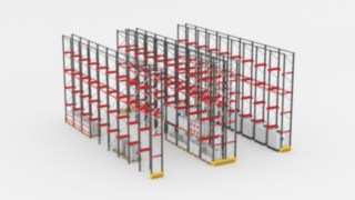 Mit Einfahrregalen lassen sich Paletten extrem kompakt lagern. Es nutzt den verfügbaren Lagerraum bis zu 90 Prozent effizienter als das klassische Palettenregal, da Paletten in neben- oder übereinander gelegenen Kanälen gelagert werden. Der Stapler fährt in die Kanäle ein und setzt die Paletten von hinten nach vorne auf beidseitig montierten Auflageschienen ab. Das Ein- und Auslagern der Ware erfolgt nach dem Lifo-Prinzip (Last in, first out), die zuletzt eingelagerte Ware wird also als erstes wieder entnommen. Das Einfahrregal eignet sich für große Lagermengen des gleichen Artikels und für Artikel mit geringer Umschlagshäufigkeit.