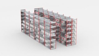 Bei Verschieberegalen sind die Regalzeilen auf Fahrwagen montiert. Für jeden Regalblock ist nur ein einziger Bediengang erforderlich, da die Regale bei Bedarf verschoben werden können. Das steigert die Lagerkapazität um bis zu 150 Prozent oder spart rund 50 Prozent der Betriebsfläche, gewährleistet aber gleichzeitig den uneingeschränkten Zugriff auf alle eingelagerten Paletten, Gitterboxen und Container. Aus diesen Gründen kommen Verschieberegale vor allem dann zum Einsatz, wenn die Lagerflächen begrenzt und bauliche Erweiterungen schwer möglich sind. Die hochdichte Raumnutzung ist besonders bei Kühlhäusern eine effiziente und energiesparende Lagertechnik. In der Schwerlast-Ausführung können die Regale Feldlasten bis zu 24 Tonnen aufnehmen.