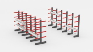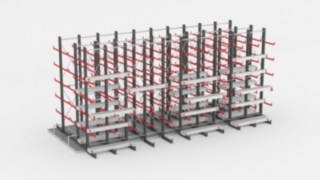 Das Kragarm-Verschieberegal ist die dynamische Version des klassischen Kragarmregals. Die Regale stehen auf Fahrwagen und lassen sich leicht hin und her bewegen. Das führt zu einer deutlich besseren Raumausnutzung, da für den gesamten Regalblock nur ein einziger Bediengang benötigt wird. Trotz der hohen Lagerdichte gewährleistet ein verschiebbares Kragarmregal jederzeit Zugriff auf das komplette Lagergut.
