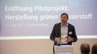Mit einer eigenen Infrastruktur produziert Linde Material Handling am Standort Aschaffenburg ab sofort grünen Wasserstoff und versorgt damit 21 Brennstoffzellenstapler der Werksflotte mit Energie.